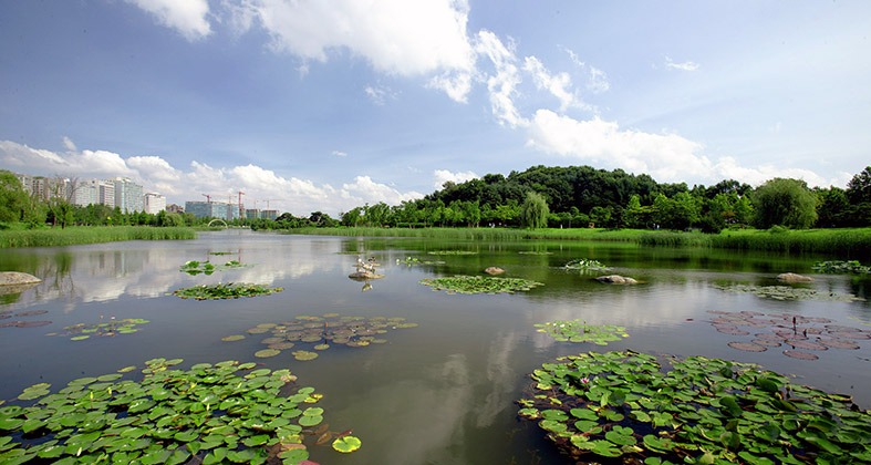Lake Park, the largest artificial lake in Korea, was built, in parallel with the development of the new town of Ilsan. It is an eco-friendly park, in which you can watch and feel beautiful landscapes both in and out of season, one of the best resort and tourism spaces in the metropolitan area. It has a variety of facilities equipped: bicycle-only lanes, ambling roads, a public square of grass, an outdoor stage, a fountain which sings it"s musical songs, a natural learning space, an exhibition arena, and others, where gorgeous festivals like the “Goyang International Horticulture Festival” and the “Goyang Lake-Park Arts Festival” are held every year. The Lake has been selected by people across the country as the best place to walk around in. Regular Guided Commentaries are also available.